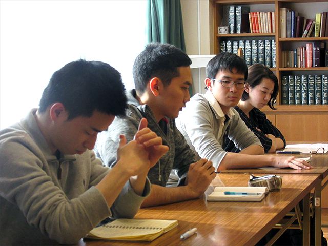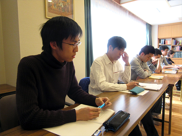 昼食前に自由時間となりました。自由時間では、各自が思い思いの場所に赴き課題に向き合います。昼食後、分かち合いの場がもたれました。塾生は限られた時間の中で、塾生として一年間意識してきたことや、現時点での使命について語り合いました。己の思いの丈をまとめ語ることは難しかったですが、塾生一人一人の発する熱い言葉が胸に迫ってくるようでした。塾長は塾生の言葉に耳を傾けながら、来年も人間塾に残る塾生には深い考えを促し、修了していく塾生には熱い激励の言葉を下さいました。